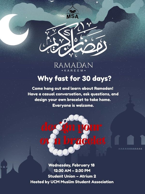 -There will also be a community Iftar hosted by the UCM Muslim Student Association on either Thursday February 26th or Friday 27th.